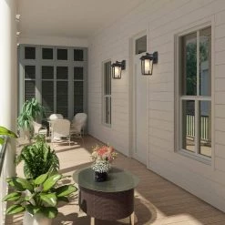 Cumax 1-Light Black Outdoor Wall Lantern Hardwired Sconce With Frosted Glass Shade by Uolfin