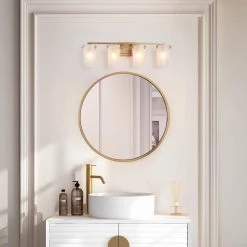 23.2 in. 3-Light Modern Gold Bathroom Vanity Light with Frosted Glass Shades by Uolfin