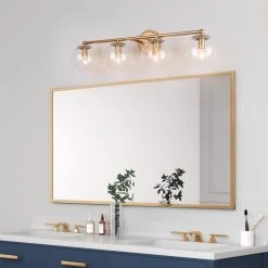 1-Light Gold Wall Sconce Light with Clear Glass Shade by Uolfin