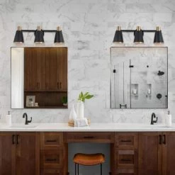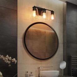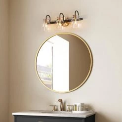 Modern Bathroom Vanity Light, 3-Light Gold and Black Wall Sconce with Clear Glass Shades by Uolfin