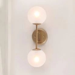 Modern 2-Light Bell Gold Vanity Light Bathroom Wall Light Fixture with Seeded Glass Shades by Uolfin