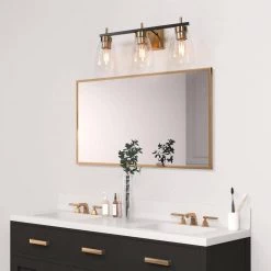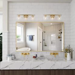 Modern Gold Bathroom Vanity Light, 4-Light Black Wall Sconces with Clear Glass Shades by Uolfin