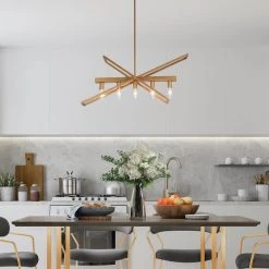 Geometric Gold Chandelier, Modern 5-Light Brushed Deep Gold Island Farmhouse Chandelier Ceiling Light with Candle Style by Uolfin