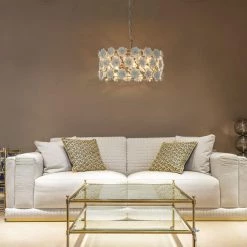 Farmhouse Gold Island Chandelier, 3-Light Modern Drum Chandelier Pendant Light with Handmade White Ceramic Flowers by Uolfin