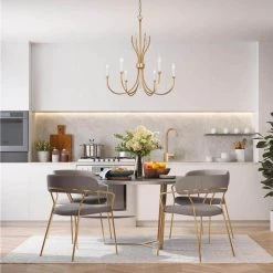 Modern Farmhouse Cage Dining Room Chandelier 4-Light Handcrafted Wood Chandelier by Uolfin
