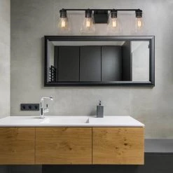 Farmhouse Gold Globe Vanity Light, 14 in. 2-Light Modern Black Bathroom Wall Light Sconce by Uolfin