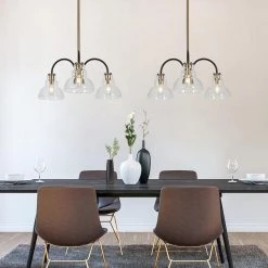 Modern Black Gold Chandelier, Linear 3-light Bedroom Chandelier with Clear Glass Shades by Uolfin