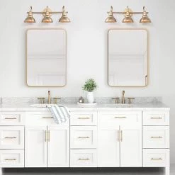 Modern Bell Bathroom Vanity Light 3-Light Brass Gold Round Wall Light with Metal Shades by Uolfin