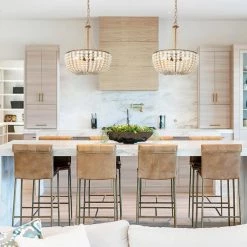 Rustic Farmhouse Dining Room Chandelier, 3-Light Retro Gold Bedroom Bowl Chandelier with White Wood Beads by Uolfin