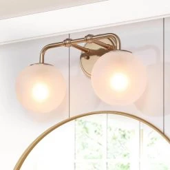 Farmhouse Gold Globe Vanity Light, 14 in. 2-Light Modern Black Bathroom Wall Light Sconce by Uolfin