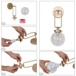 Refreshing the home decor with a modern design, this gold globe wall sconce light from Uolfin Lighting ingeniously combines the gold lamp body with the clear glass shade. Lamp body finished in a charming gold painting and takes a fluent loop shape design adding a sense of playful, decorating with a globe clear shade, the whole light fixture emits a trendy appeal. Meanwhile, with the glass shade, the light bulb is prevented from damage, the bathroom vanity light is ETL listed to be safe use in damp locations. From the foyer, the living room, bedroom, kitchen, and even bathroom vanity area, this modern wall sconce light is widely applied.