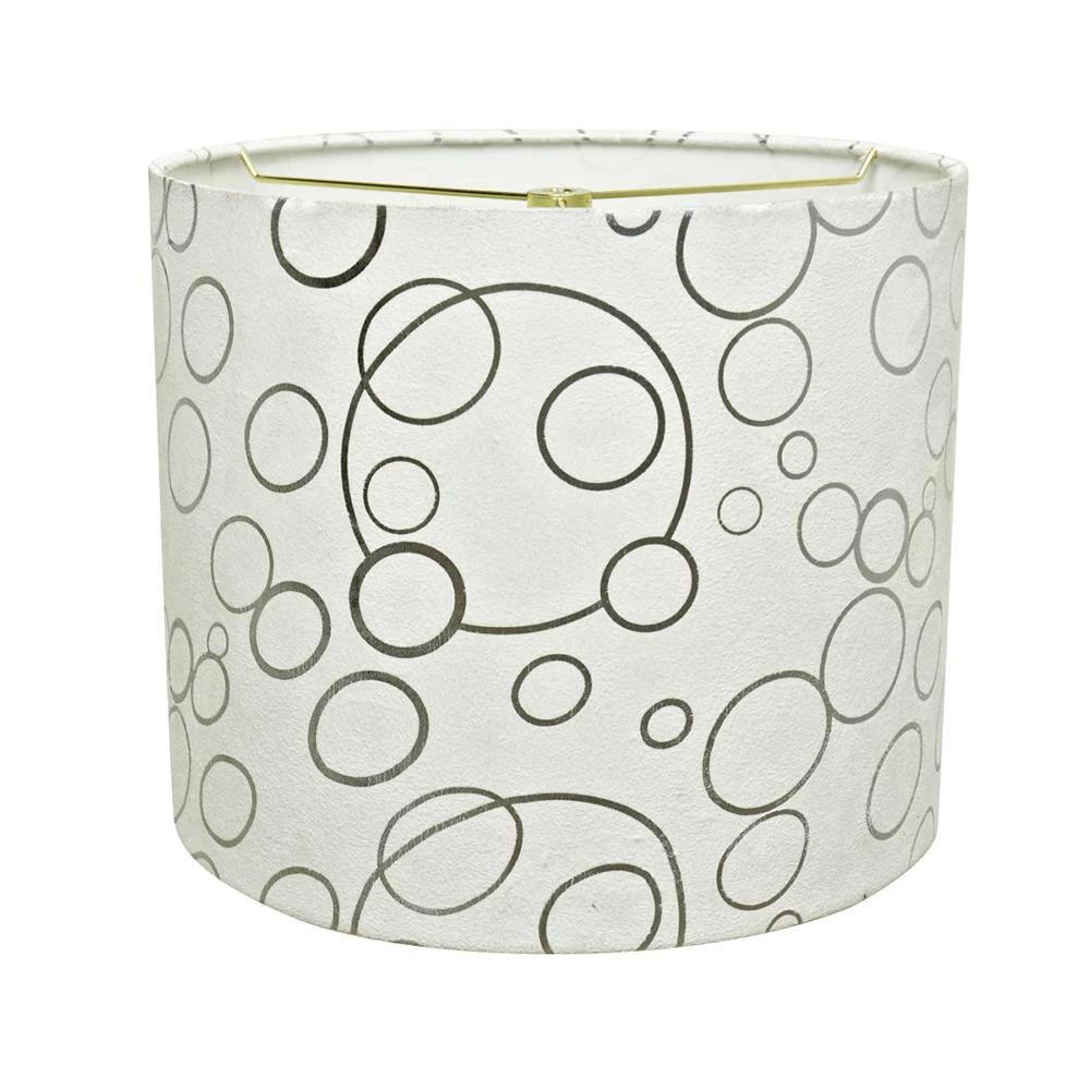 Aspen Creative is dedicated to offering a wide assortment of attractive and well-priced portable lamps, kitchen pendants, vanity wall fixtures, outdoor lighting fixtures, lamp shades, and lamp accessories. We have in-house designers that follow current trends and develop cool new products to meet those trends. Aspen Creative offers a 1 pack transitional Hardback Drum (Cylinder) replacement lamp shade in white. Made with suede fabric with silver circle pattern. The lamp shade size is 12 in. top x 12 in. bottom x 10 in. height. This lamp shade is a Spider construction designed to attach to lamp harp. Our hardback shades use Virgin Styrene backing board to produce a warm, natural and smooth light more appealing than shades made with recycled Styrene board that can crack and yellow over time. Applications – For table lamps, accent lamps, vintage lamps, candle stick lamps and kid’s room lamps.