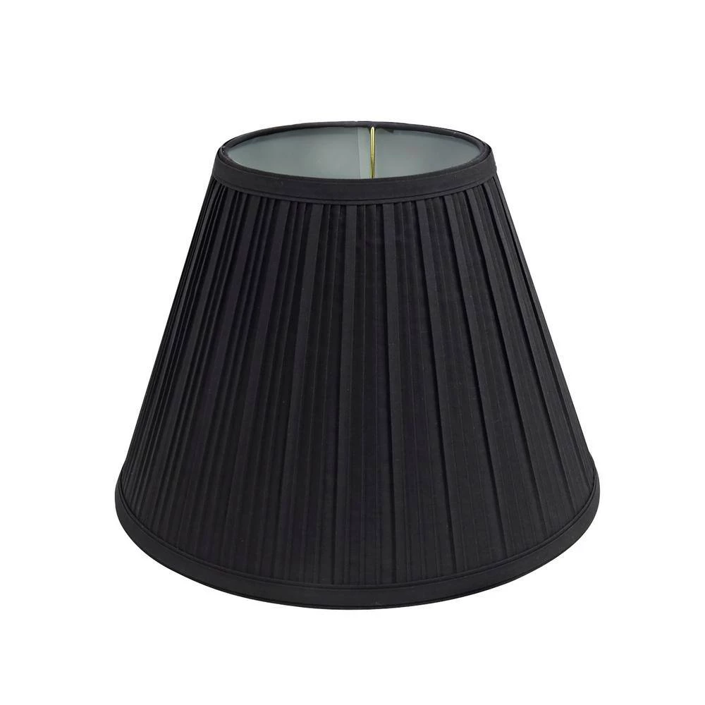 Aspen Creative is dedicated to offering a wide assortment of attractive and well-priced portable lamps, kitchen pendants, vanity wall fixtures, outdoor lighting fixtures, lamp shades, and lamp accessories. We have in-house designers that follow current trends and develop cool new products to meet those trends. Aspen Creative offers a 1 pack transitional pleated empire lamp shade in black. Made with tetoron cotton fabric. The lamp shade size is 6 in. top, 12 in. bottom and 9 in. slant height. This lamp shade is a UNO construction, designed to fit only phenolic threaded sockets that measure 1-3/8 in. wide (socket rings not included). Applications For Table Lamps, Accent lamps, Vintage Lamps, Candle Stick lamps and Kids Room Lamps.