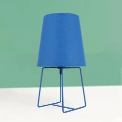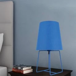Aspen Creative is dedicated to offering a wide assortment of attractive and well-priced portable lamps, kitchen pendants, vanity wall fixtures, outdoor lighting fixtures, lamp shades, and lamp accessories. We have in-house designers that follow current trends and develop cool new products to meet those trends. Aspen Creative offers a one pack set metal accent table lamp, with a transitional design in a blue painted finish. It includes an empire shaped lamp shade in blue. The lampshade size is 5 in. top, 7 in. bottom, and 7 in. slant height. The lamp has an on/off rotary switch and uses an E12 base light bulb, 60-Watt maximum (light bulb not included). Lamp is UL Listed. Applications – living room lighting and family room lighting, as well as bedrooms and offices.