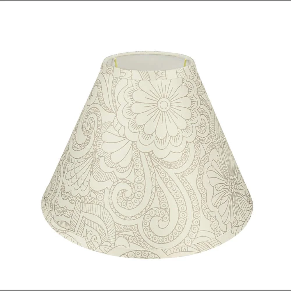 Aspen Creative is dedicated to offering a wide assortment of attractive and well-priced portable lamps, kitchen pendants, vanity wall fixtures, outdoor lighting fixtures, lamp shades, and lamp accessories. We have in-house designers that follow current trends and develop cool new products to meet those trends. Aspen Creative offers a 1-pack transitional hardback empire shaped replacement lamp shade in white and grey. Made with printed fabric with floral design. The lamp shade size is 5 in. top x 13 in. bottom x 9-1/2 in. H. This lamp shade is a UNO construction, designed to fit only Phenolic threaded sockets that measure 1-5/16 in. W (socket rings not included). UNO fitter ring inner diameter is 33mm or 1-5/16 in.. Applications – For Table Lamps, Accent lamps, Vintage Lamps, Candle Stick lamps and Kid’s Room Lamps.