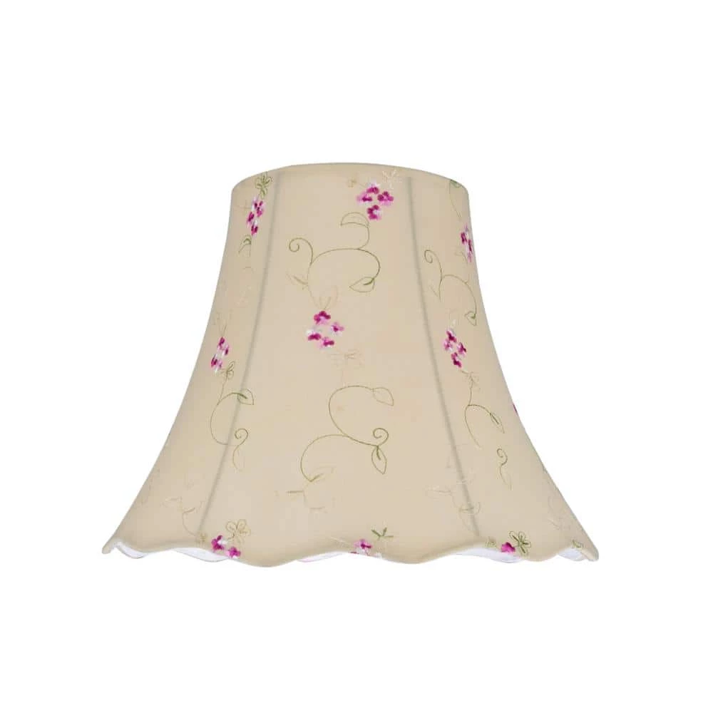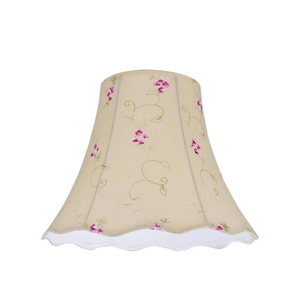 Aspen Creative is dedicated to offering a wide assortment of attractive and well-priced portable lamps, kitchen pendants, vanity wall fixtures, outdoor lighting fixtures, lamp shades, and lamp accessories. We have in-house designers that follow current trends and develop cool new products to meet those trends. Aspen Creative offers a 1 pack transitional scallop bell replacement lamp shade in apricot. Made with tetoron cotton fabric with floral embroidered design. The lamp shade size is 7 in. top, 14 in. bottom and 11-1/2 in. slant height. This lamp shade is a spider construction which is designed to attach to a lamp harp. Suitable for table lamps, accent lamps, vintage lamps, candle stick lamps, kid’s room lamps, bedroom lamps, bedroom table lamps, night stand lamps, reading lamps, bedside reading lamps, living room end table lamps and bedroom night stand lamps.