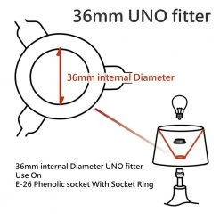- UNO lampshades fit only phenolic threaded sockets that measure 1-5/16 in. W (socket rings not included) UNO fitter ring inner Dia: 33mm or 1-5/16 in.