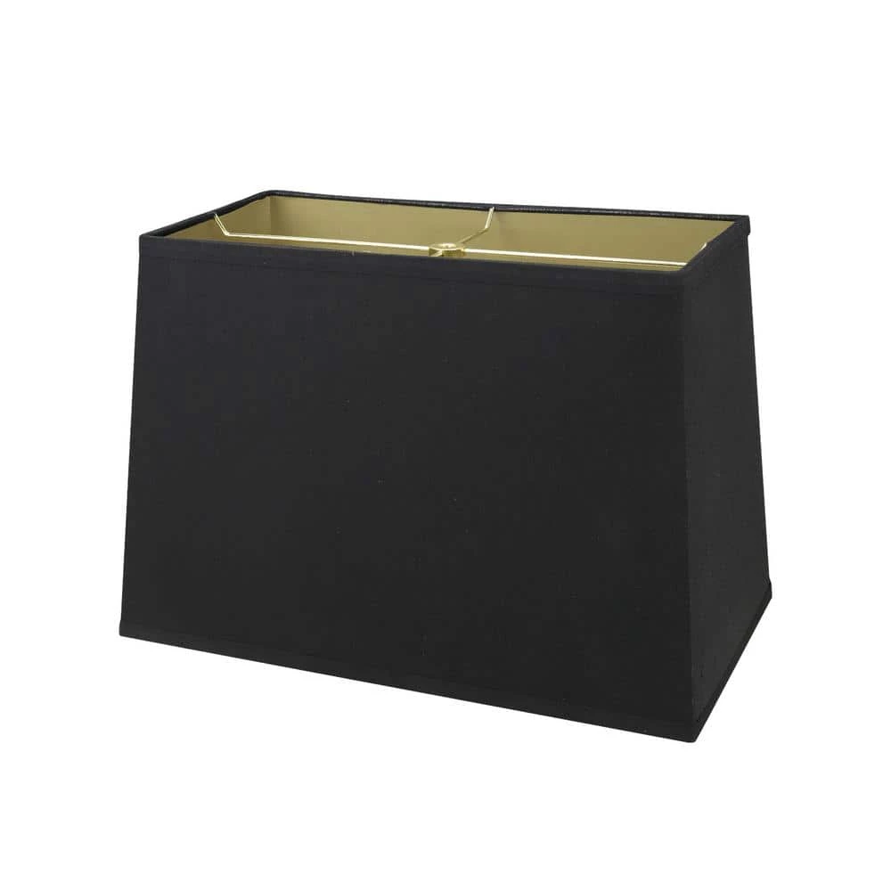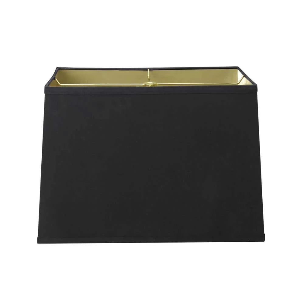 Aspen Creative is dedicated to offering a wide assortment of attractive and well-priced portable lamps, kitchen pendants, vanity wall fixtures, outdoor lighting fixtures, lamp shades, and lamp accessories. We have in-house designers that follow current trends and develop cool new products to meet those trends. Aspen Creative offers a 1 pack transitional rectangle hardback replacement lamp shade. Made with tetron cotton fabric in black with gold inside. The lamp shade dimensions are 7 in. + 14 in. top, 9′ + 16 in. bottom and 11 in. slant height. Spider construction designed to attach to lamp harp. Our hardback shades use Virgin Styrene backing board to produce a warm, natural and smooth light more appealing than shades made with recycled Styrene board that can crack and yellow over time.Applications – For table lamps, accent lamps, vintage lamps, candle stick lamps and kid’s room lamps.