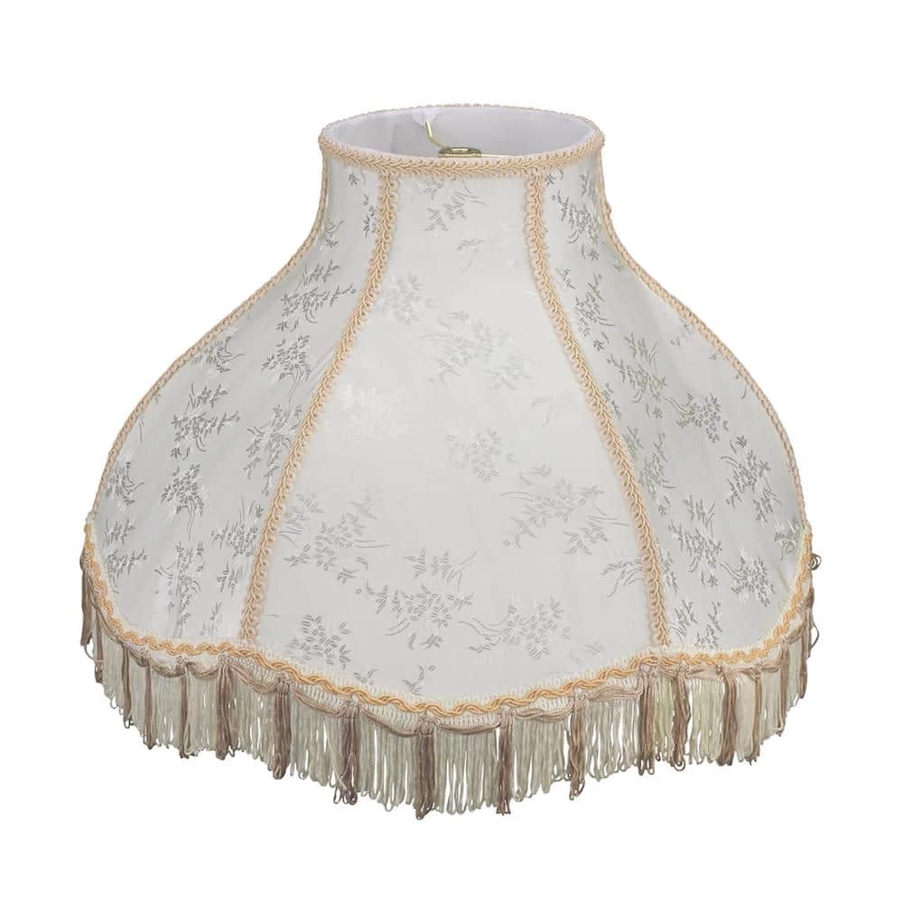 Aspen Creative is dedicated to offering a wide assortment of attractive and well-priced portable lamps, kitchen pendants, vanity wall fixtures, outdoor lighting fixtures, lamp shades, and lamp accessories. We have in-house designers that follow current trends and develop cool new products to meet those trends. Aspen Creative offers a 1 pack transitional scallop bell lamp shade in beige. Made with jacquard textured fabric with fringe. The lamp shade size is 6 in. top, 17 in. bottom and 12 in. slant height. This lamp shade is a spider construction which is designed to attach to a lamp harp. Suitable for table lamps, accent lamps, vintage lamps, candle stick lamps, kid’s room lamps, bedroom lamps, bedroom table lamps, night stand lamps, reading lamps, bedside reading lamps, living room end table lamps and bedroom night stand lamps.