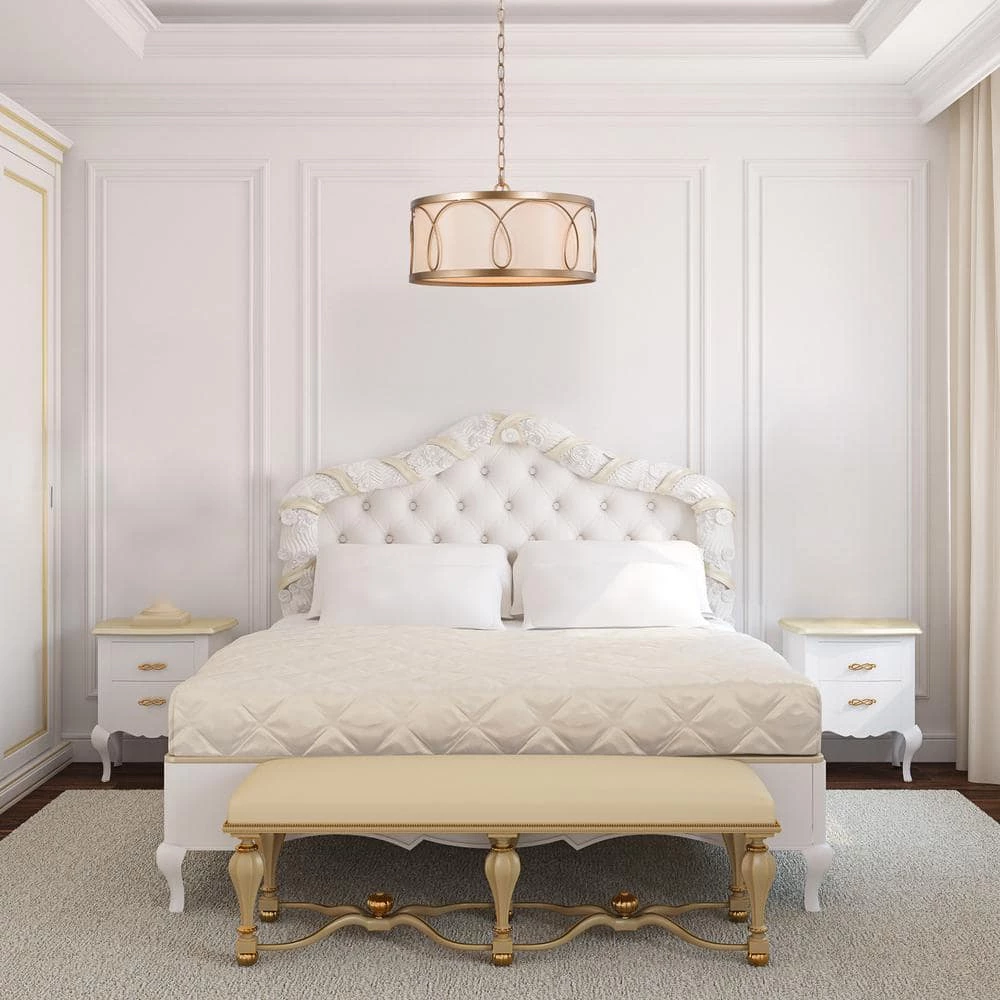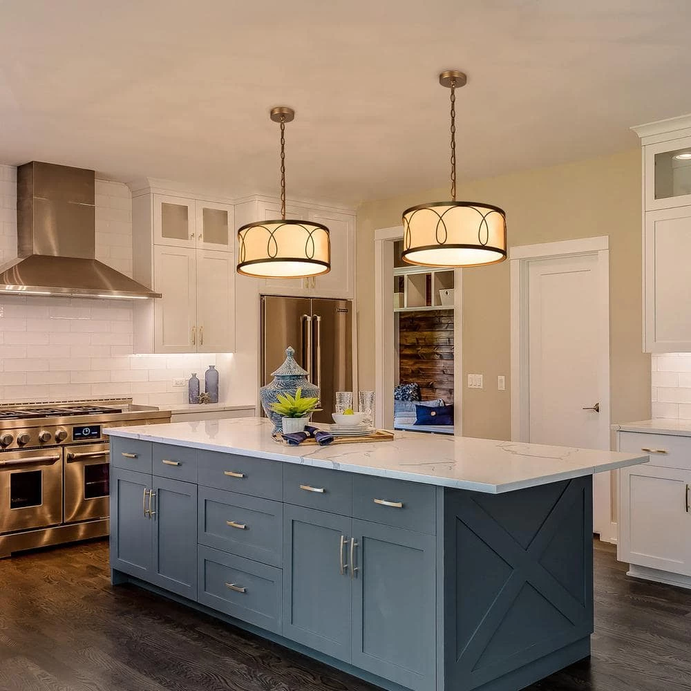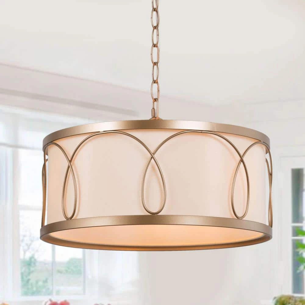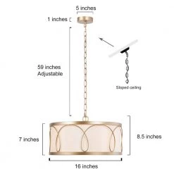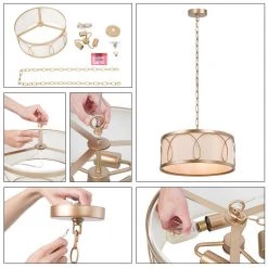 - Modern golden chandelier: the white drum-shaped lampshade with golden lines entwines the modern features. the simple combination of gold and white also matches the minimalist style