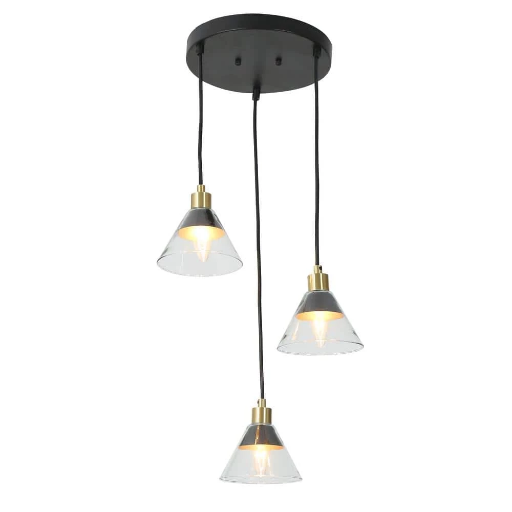 Lodge, industrial, rustic and farmhouse-style, this modern bell-shaped pendant light by Uolfin Lighting contains all of these elements in one, cohesive design. The fixture body is comprised of 3 adjustable cords and a safely attached round canopy that finished in a matte black for a modern vintage appearance. While for lamp body, electroplate brass finish is adopted to decrate, offering a luxurious appeal. The clear glass shade are shaped in a bell design, which looks chic and exquisite. It supports up to three 40-Watt bulbs (not included) will emit just the right amount of glow to your space. Also works with a dimmer switch (not included), allowing you to switch up the lighting whenever inspiration strikes. A perfect small chandelier pendant light/semi flush mount lighting for updating the aesthetic of your kitchen island, dining room table, bedroom or foyer, entryway.
