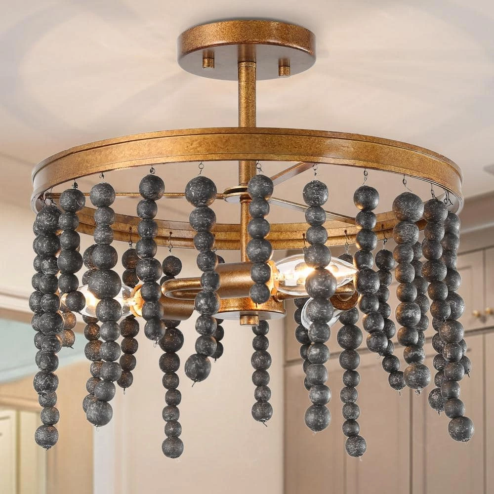 Brings retroelements to today’s inner decor theme, this semi-flush mount light from Uolfin Lighting takes ideas of old design, but performance in a modern way. The gold finish is processed in a vintage craft, creating an appearance of rustic and retro. Each of the wooden beads is handcrafted, exquisite, and enhances the traditional appeal. With such a trendy light fixture to lead your home decor style to create a modern traditional home can not be more suitable.