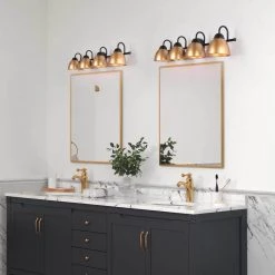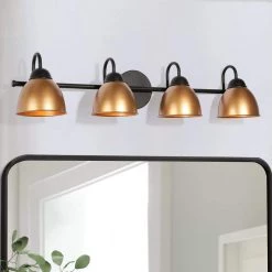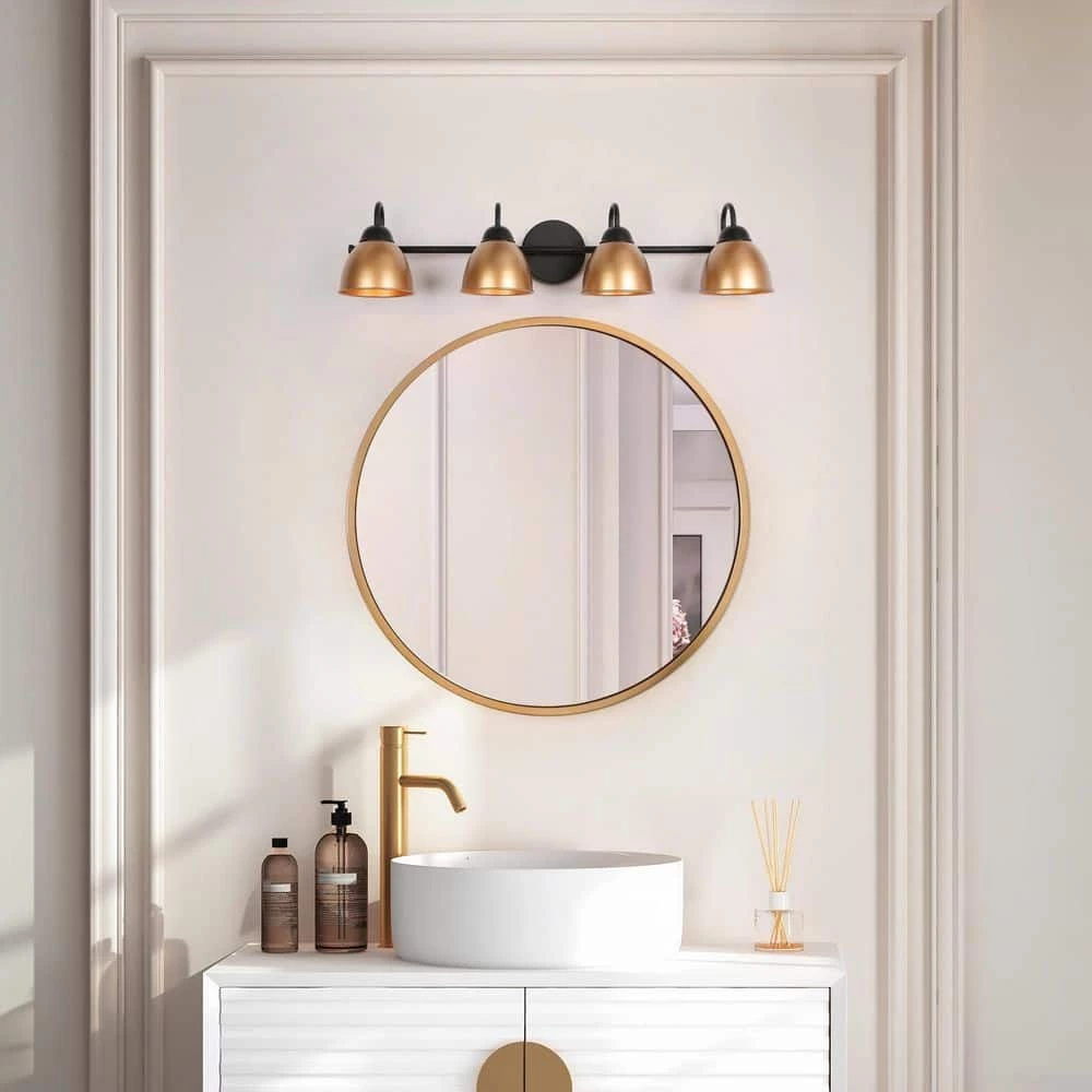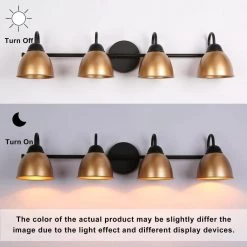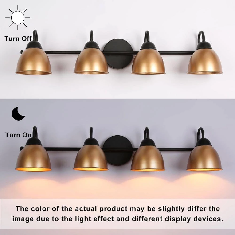 - BULB REQUIREMENTS: The gold and black bathroom vanity light requires 4 maximum 40-Watt E12 candelabra base incandescent/LED bulbs (not included), also works with a dimmer switch(sold separately), allowing you to switch up the lighting whenever inspiration strikes