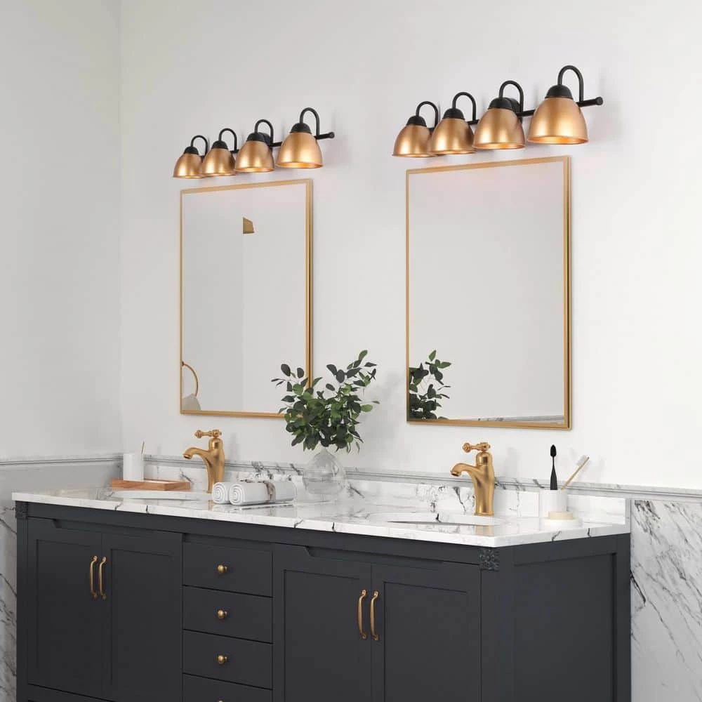 - UL LISTED and DURABLE: For safe use, this modern gold and black vanity light is UL Listed , sturdy metal construction is built to last in damp locations and offers a clean look