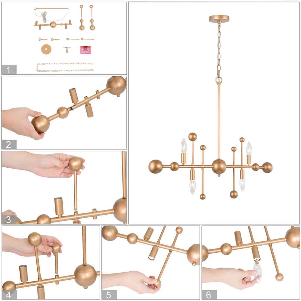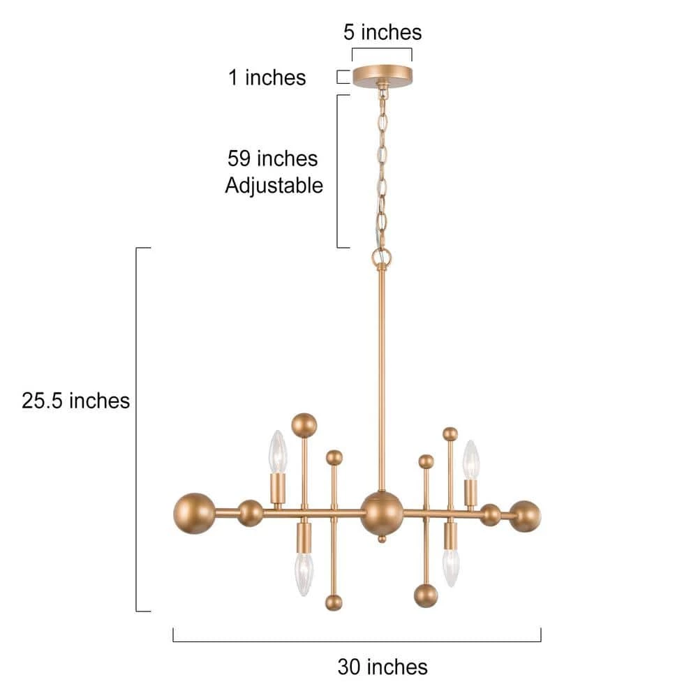 - GOLD MODERN LINEAR SPUTNIK CHANDELIER LIGHT: With a modern gold sputnik finish and exposed candle bulb design, this Gold Modern Island Linear Chandelier is big and bright enough to be the only light source in your room