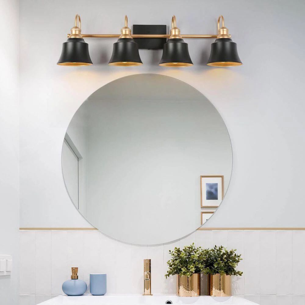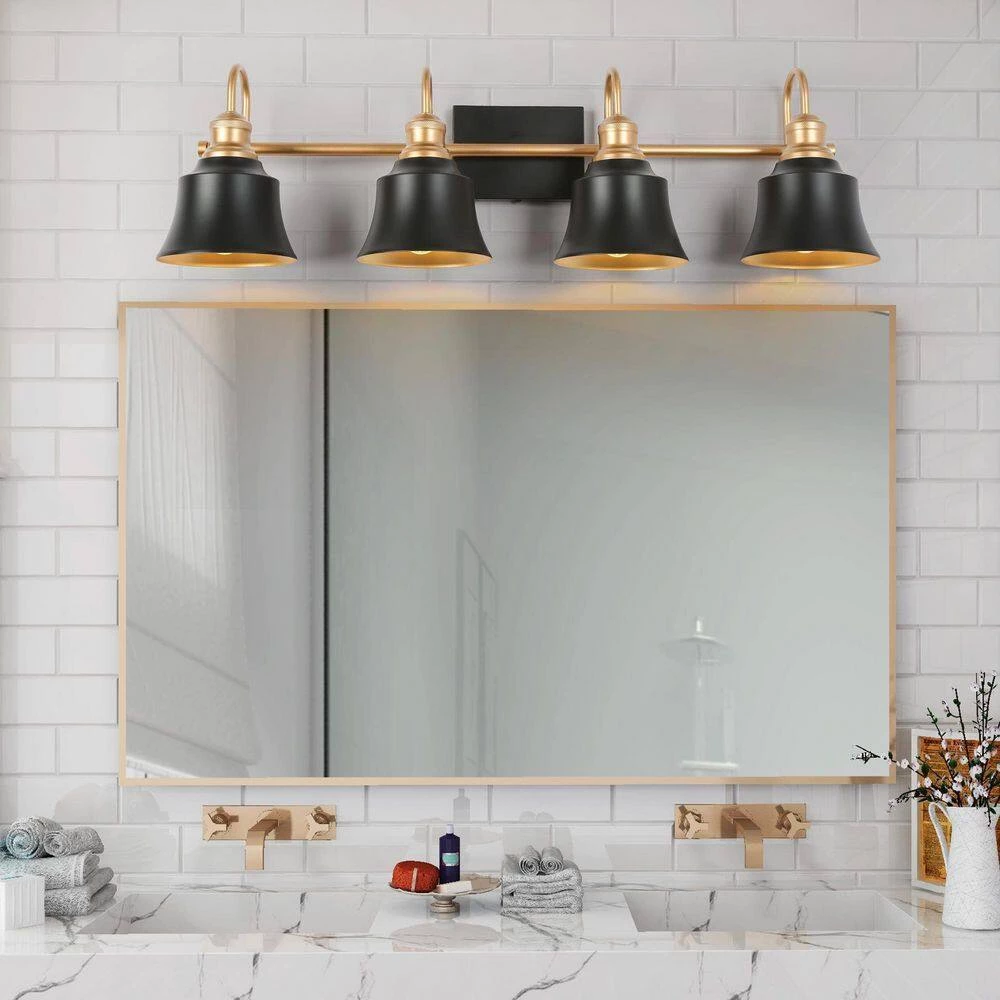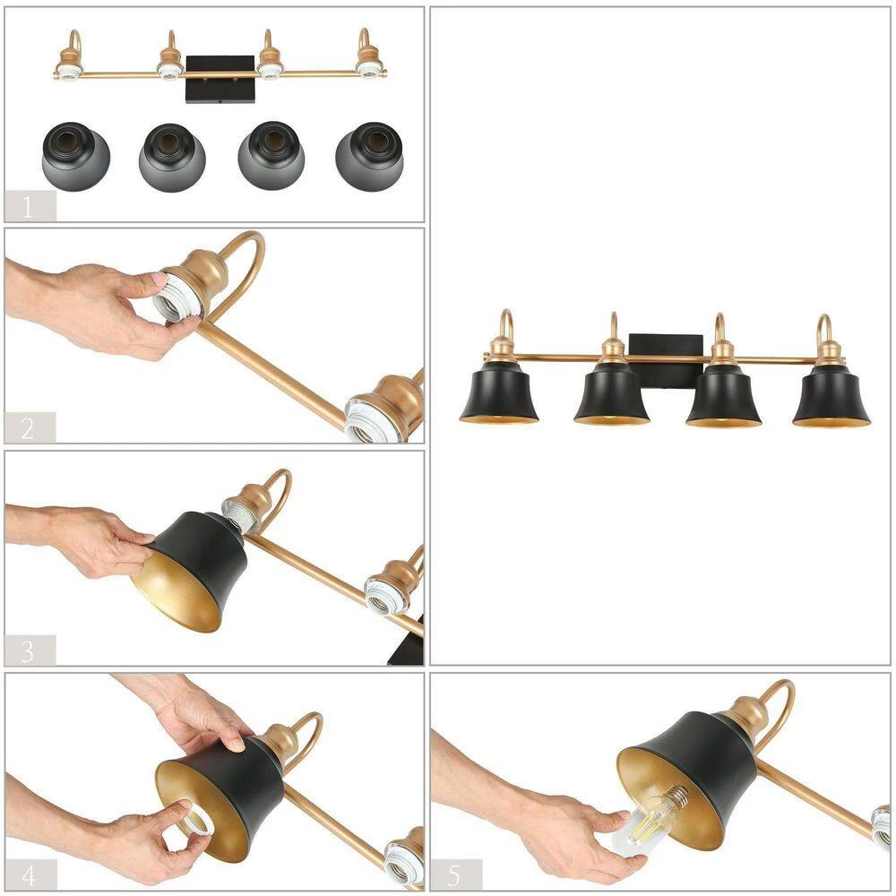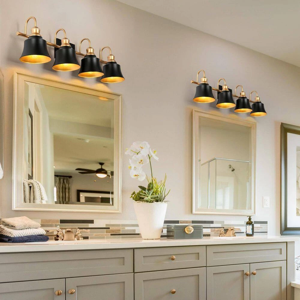 - BULB REQUIREMENTS: The gold and black bathroom vanity light requires 4 maximum 60-Watt E26 candelabra base incandescent/LED bulbs (not included), also works with a dimmer switch(sold separately), allowing you to switch up the lighting whenever inspiration strikes