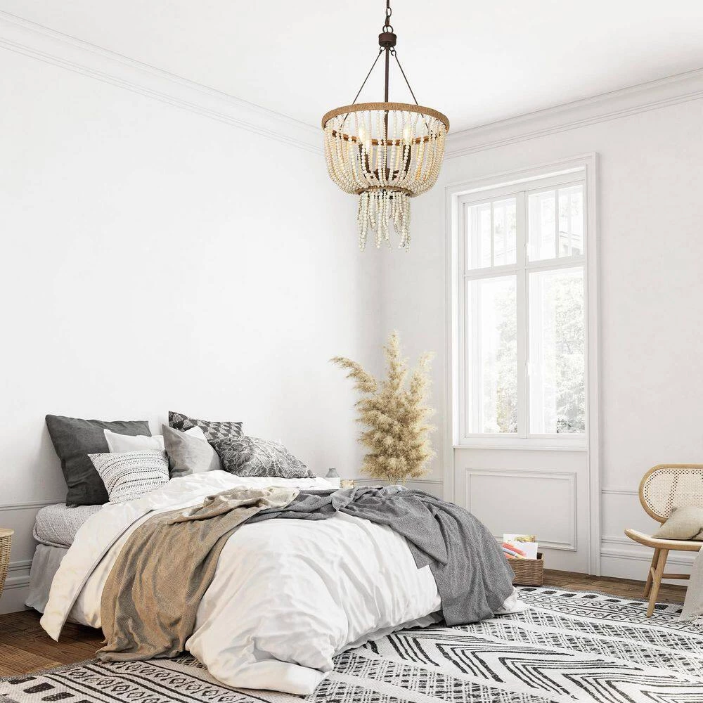 When this antique gold Island chandelier light by Uolfin Lighting is hung in your house, a simple atmosphere blows on your face. The gold color is used as the base of the whole lamp body, and the hand-made retro finishes, every in. of the lamp body has been carefully crafted, and the rust stains of various shapes are telling the passing of time. The entire drum-shaped chandelier is surrounded by strings of wooden beads. If you are a retro suitor, this lamp is a perfect match for you. If you are looking for such a lamp in your bedroom, living room, kitchen, island, dining room, or stairwell or hallway, this old golden chandelier will be a versatile choice. Whether your home is a modern farmhouse, transitional, classic, cottage, or rustic style, it can be easily controlled.