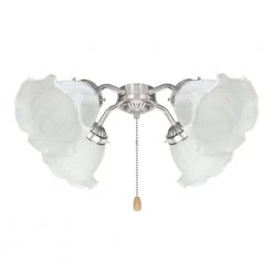 Aspen Creative is dedicated to offering a wide assortment of attractive and well-priced portable lamps, kitchen pendants, vanity wall fixtures, outdoor lighting fixtures, lamp shades, and lamp accessories. We have in-house designers that follow current trends and develop cool new products to meet those trends. Aspen Creative offers a 4-pack of replacement frosted floral glass shades. Each glass shade has a 2-1/4 in. fitter size, and are 5-1/4 in. H x 5-1/8 in. Dia. Replacement glass for ceiling fan light kits, bath wall fixtures and wall sconces that require a 2-1/4 in. fitter. Upgrade and / or change the look fo your fixtures with an easy to glass change. Ships in a 4-pack.