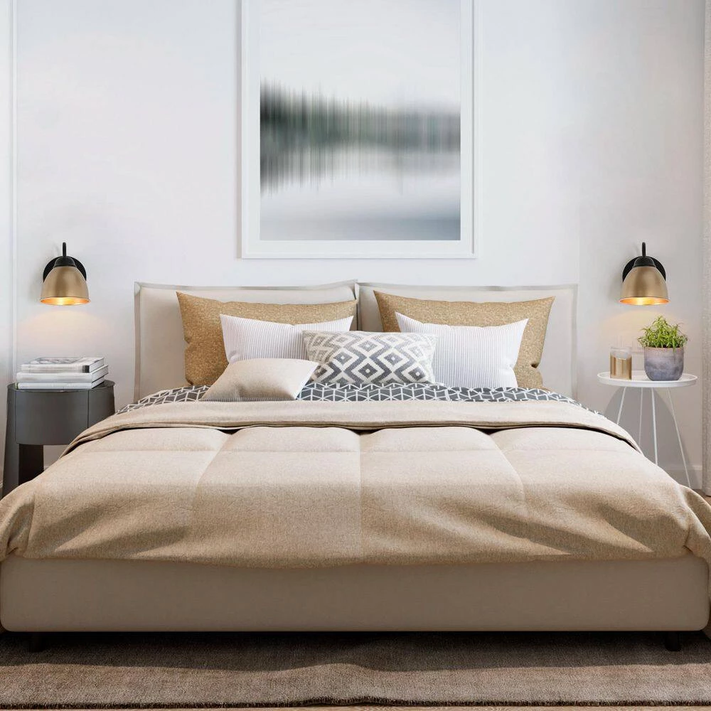 Blends industrial and modern contemporary style, the 1-light Gold Transitional Sconce Wall Lighting with Metal Bowl Shade adds a pop of color to your modern transitional space. Hand-painted with chic gold, combining bowl shade and contemporary charm, the modern vanity light complements a myriad of styles from the modern farmhouse and country lodge to classic mid-century and transitional cottages. The bowl metal shade facing upwards or downwards focuses the light and emits a soft light source to wash away your fatigue and make you feel the comfort and warmth of your home to the greatest extent. You’ll love how this light can transform your home with its striking style and function. Whether you’re outfitting a new house, want a modern theme living room or you’re searching for sassy wall light ideas to add to your charming bathroom, powder table, foyer/entryway, or bedroom, the contemporary wall sconce is a versatile choice.