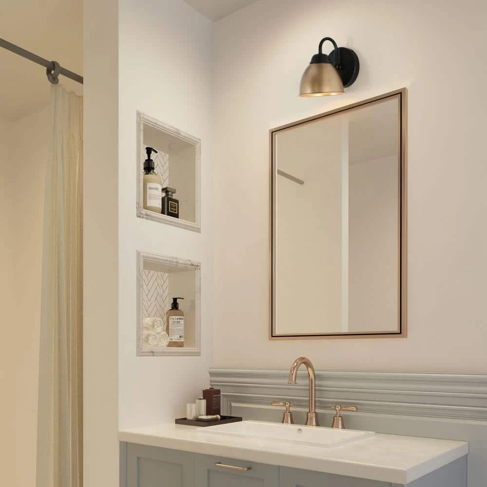- BULB REQUIREMENTS: The gold and black bathroom vanity light requires 1 maximum 40-Watt E12 candelabra base incandescent/LED bulb (not included), also works with a dimmer switch(sold separately), allowing you to switch up the lighting whenever inspiration strikes