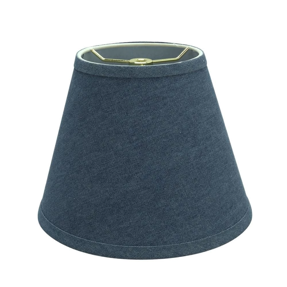 Aspen Creative is dedicated to offering a wide assortment of attractive and well-priced portable lamps, kitchen pendants, vanity wall fixtures, outdoor lighting fixtures, lamp shades, and lamp accessories. We have in-house designers that follow current trends and develop cool new products to meet those trends. Aspen Creative offers a 1 pack transitional Hardback Empire lamp shade in Washing Blue. Made with Denim Fabric. The lamp shade size is 5 in. top x 9 in. bottom x 7 in. slant height. This lamp shade is a Spider construction designed to attach to lamp harp. Our hardback shades use Virgin Styrene backing board to produce a warm, natural and smooth light more appealing than shades made with recycled Styrene board that can crack and yellow over time. Applications – For table lamps, accent lamps, vintage lamps, candle stick lamps and kid’s room lamps.