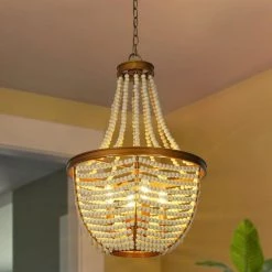 - RUSTIC GOLD CHANDELIER: The exquisite hand-made beaded chandelier not only fits perfectly with your home but also shows the unique taste of the owner