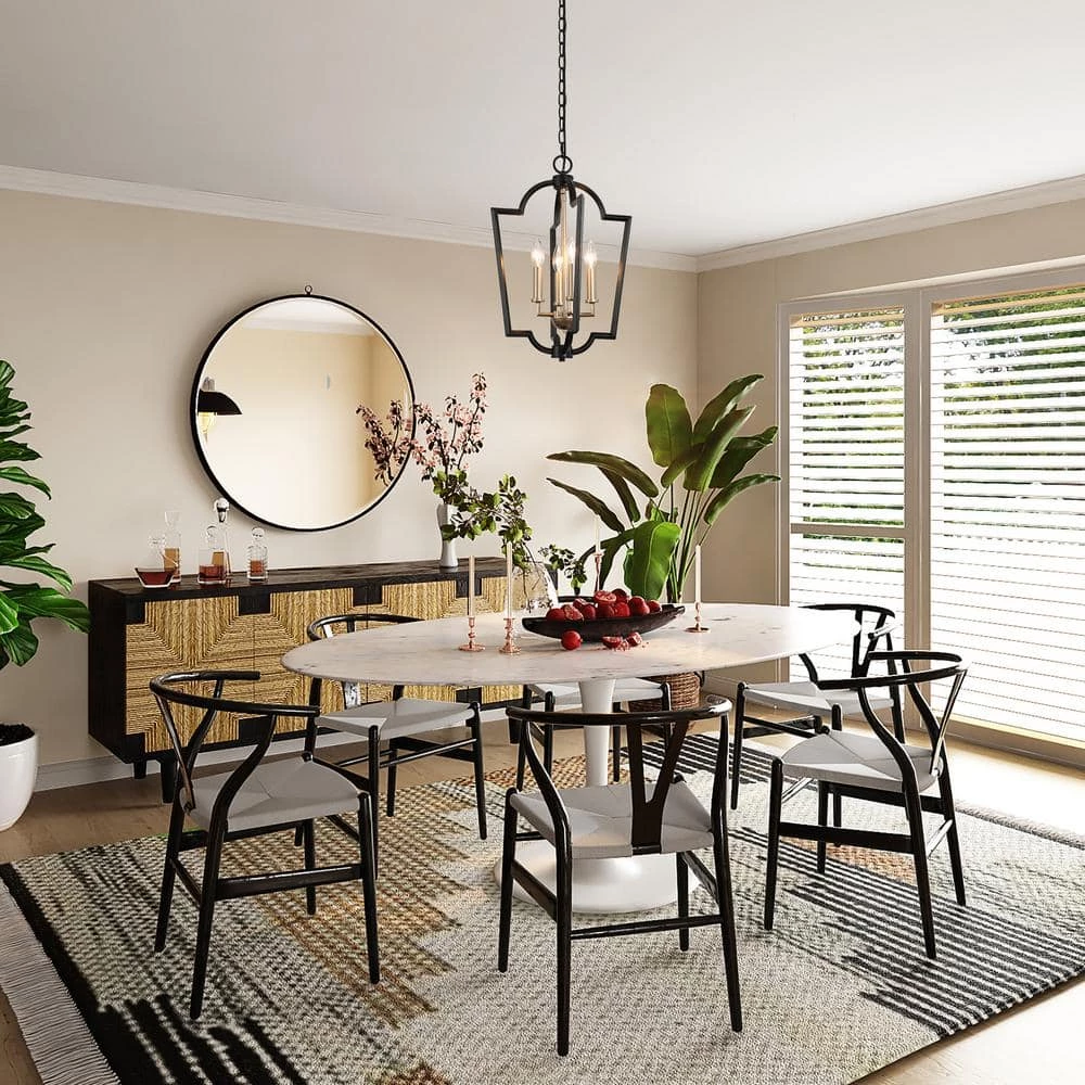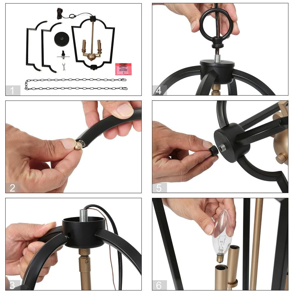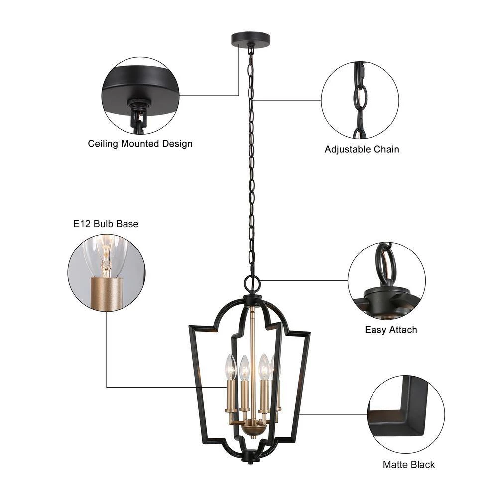 A perfect mix of contemporary design, this 4-light modern farmhouse black and gold bedroom chandelier by Uolfin Lighting is ideal for adding a minimalist geometric flair to your lovely foyer/entryway, living room, dining room, kitchen island, bedroom, laundry, and more. Delicately crafted of sturdy metal, its popular brass gold and matte black finish brings a chic fashionable atmosphere to your space and is easily adaptable for a range of home decor. This 4-light gold pendant light comes with a 59 in. adjustable hanging chain that accommodates multiple ceiling heights. This on-trend industrial cage pendant lighting fixture will always add modern appeal to any interior through its seamless minimalist silhouette, whether in the countryside or a busy city.