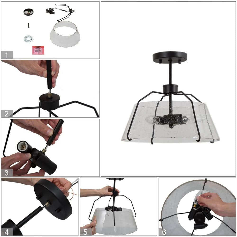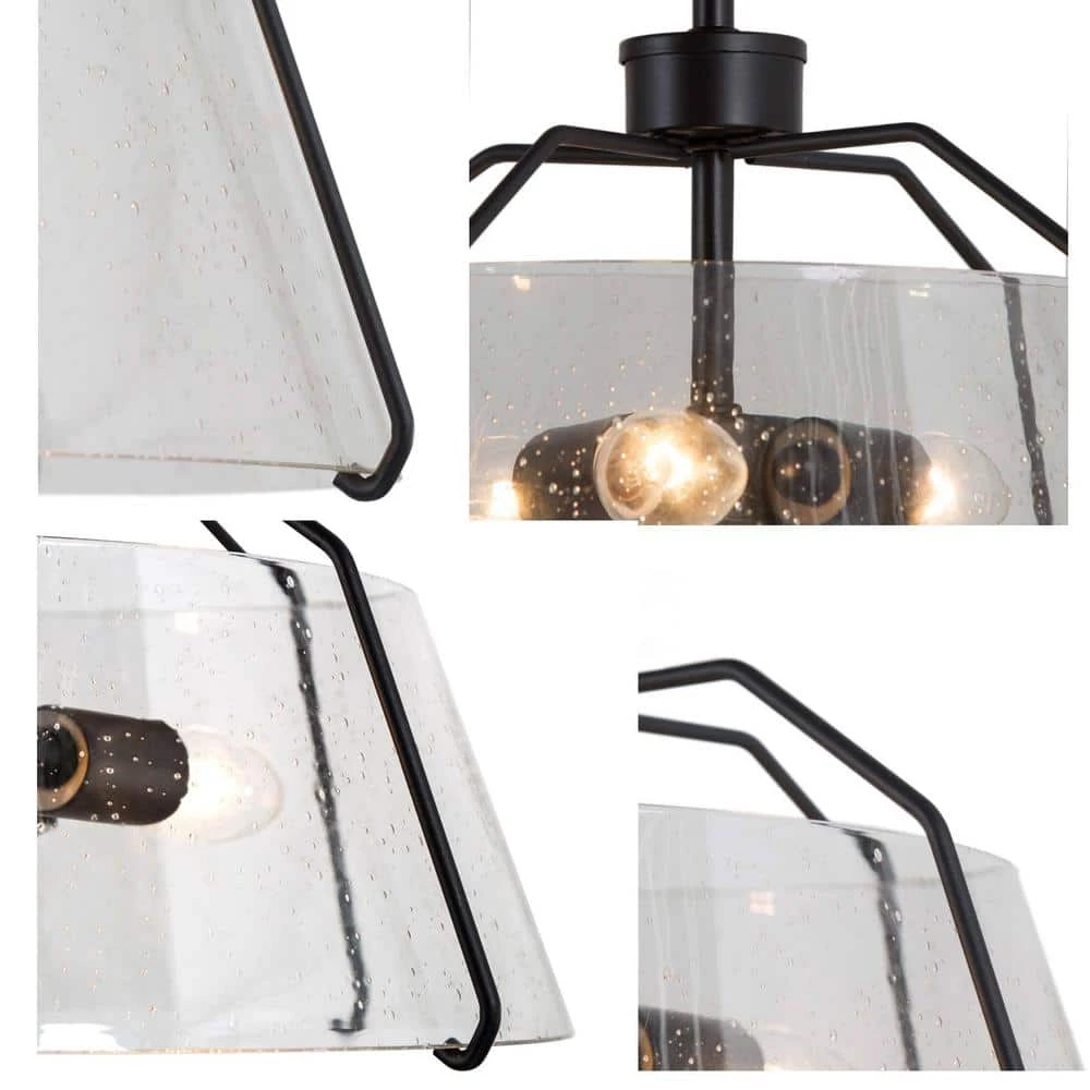 Looking for a modern, elegant and advanced design? This 3-Light Modern Black Geometric Semi-Flush Mount Light by Uolfin will fulfill your imagination of lighting. The geometric seeded glass shade shows the modern art look and adds more minimalistic appeal than others. Combining a modern minimalist style and mysterious black finish, this black ceiling light fixture will best decorate the transitional design in your kitchen island, dining table, living room, foyer/entryway, and more. It is friendly for anyone to install with its simple and minimalist structure and the open glass shade is convenient for you to clean.
