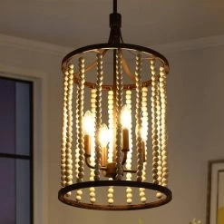 Gracing your house with the Drum Chandelier by Uolfin Lighting. The beaded chandelier features black rustic bulb base, grayish drum frame and distressed white wood bead strings, creating a mix of farmhouse, rustic, bohemian, and vintage style. Hanging this farmhouse antique black chandelier in the dining room, kitchen island, bedroom, entryway, hallway, and foyer would be a wise choice to add ambiance.