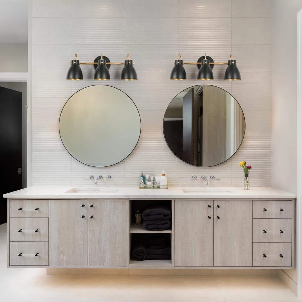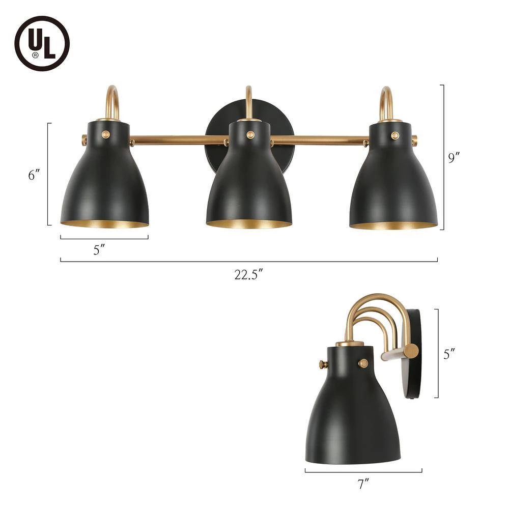 The classic black and gold bathroom vanity light of the Uolfin Lighting walks into your bathroom, not only bringing light to the house, but also adding a mid-century modern charm to your bathroom. This transitional metal light combines modern and industrial elements. The black finish is mixed with golden embellishments. Horizontal bar supported by the rounded canopy, the light holder is firm, and the shade should not be deformed. The modern vanity light creates a minimalist and modern feel. The combination of gold and black shows a unique beauty. If your bathroom or powder room is looking for such a light, this wall sconce must be a good choice. Of course, this retro wall light can be used in damp, but it is not limited to bathroom use. It can also be installed in other combinations in the room with your imagination.