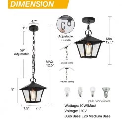 This 1-Light modern farmhouse textured black outdoor hanging lantern light by Uolfin Lighting is combined with a black finish and clear seeded glass. The distinct design is a perfect match with your modern, modern farmhouse, transitional, cottage, minimalism, and industrial style house. This black classic outdoor chandelier looks like a mini farmhouse cottage and will not only light up the darkness for you but is a great choice for your outdoor decor. This black pendant light has a compact suspension height that can be adjusted, so you can DIY according to your inspiration. It can be singly, in pairs, or multiple, with different suspension lengths to adapt to different sizes of space. You can hang a row in the place in the corridor, or hang multiples on your patio. When this black pendant comes to your room, it not only lights up the darkness but also decorates the house to show the extraordinary taste of the room owner. If you want to update the house, this black industrial outdoor light will be a good choice.