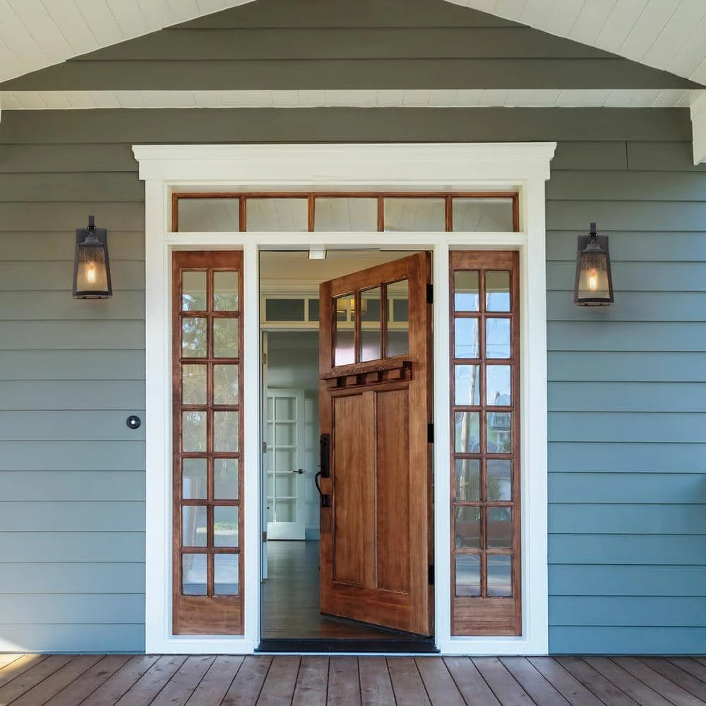 - Classic meets modern rustic: a refreshing traditional appeal stems from our Exton outdoor collection, the simple, sturdy lines and textured black finish create a bold statement with this outdoor sconce, the clean style is complemented by panels of seedy glass that soften the whole look, a perfect solution for modern homes