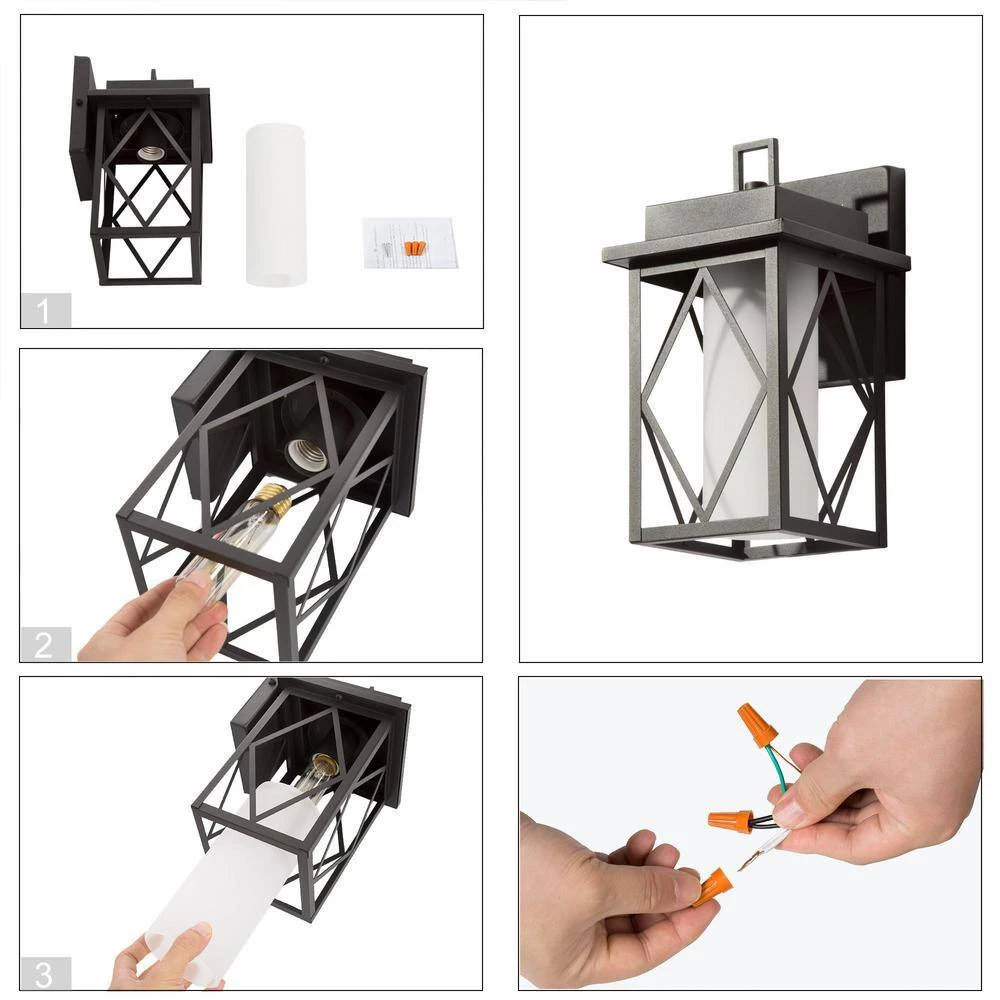 This Matte Black Lantern Outdoor Wall Light by Uolfin Lighting uses an open geometric frame design with a frosted lampshade, which perfectly blends industrial, modern, transitional, and farmhouse styles. If you choose to hang this lamp outdoors, when night falls, and go home from the outside, the warm light through the frosted glass can give you stability in the first moment and drive you out of the unknown in the dark. The maximum brightness of 60-Watt is enough to light up the road ahead. It can not only be matched in pairs to guard your door, but also can be installed around the wall to light up the outline of your entire house. Garages, barns, basements, corridors, etc., can choose this black outdoor wall lamp to light them. If you are looking for outdoor lights, I believe this is a perfect choice.