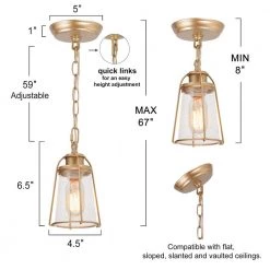 - ADJUSTABLE HANGING LENGTH: This mini glass pendant light contains an adjustable chain with 59-inch long (Overall Height Max: 66.5″; Overall Height Min: 11.5″). Just take out a few chain links to meet your matching needs
