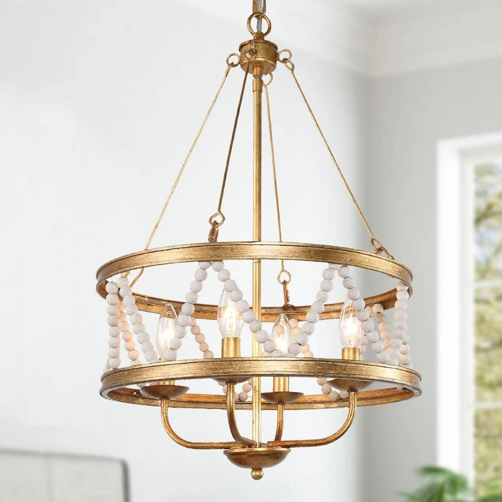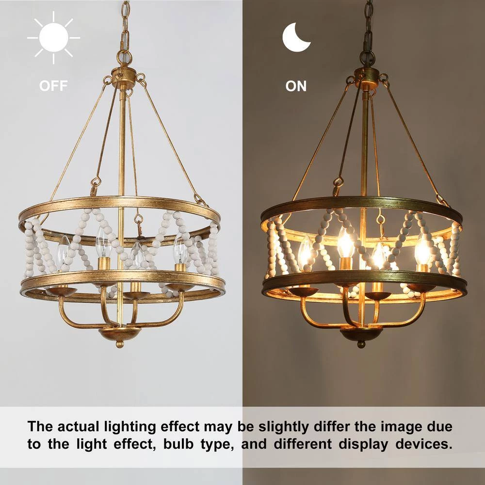 When this Rustic Gold Drum Island Chandelier by Uolfin is hung into your house, a simple atmosphere blows on your face. The gold color is used as the base of the whole lamp body, and the hand-made old finishes, every inch of the lamp body has been carefully polished, and the rust stains of various shapes are telling the passing of time. The entire drum-shaped chandelier is surrounded by strings of wooden beads. If you are a retro suitor, this lamp is a perfect match for you. If you are looking for such a lamp in your bedroom, living room, kitchen, island, dining room, or stairwell or hallway, this old golden chandelier will be a versatile choice. Whether your home is a modern farmhouse, transitional, classic, cottage, or rustic style, it can be easily controlled.