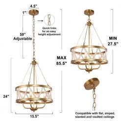 - Adjustable hanging length: this lamp contains a 59 in. L chain, the longest hanging length can reach 85 in. if you need to adjust the length, you can take out a few chain links to meet your matching needs