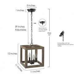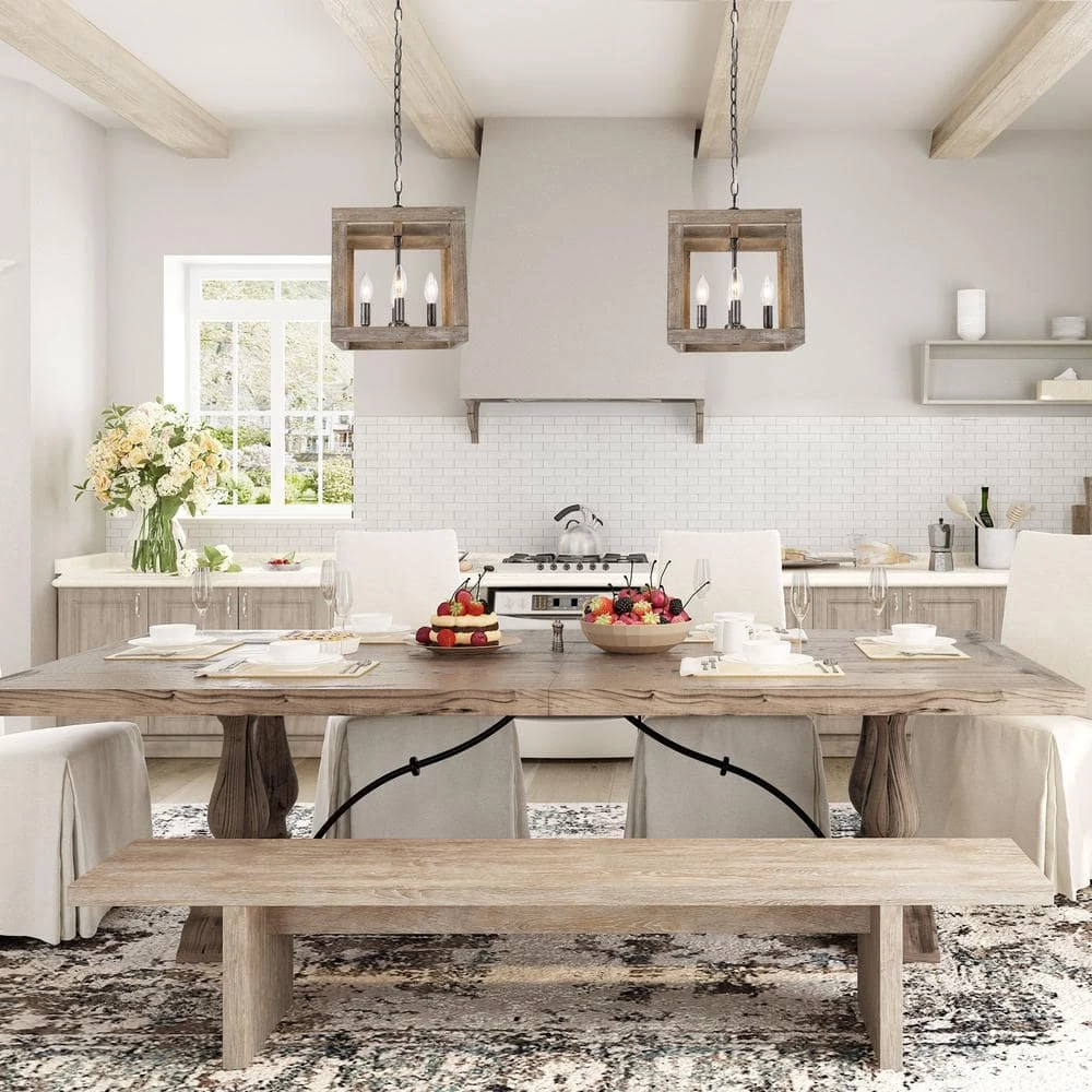 - FARMHOUSE WOOD CHANDELIER: The shapely sleek silhouette features a clean square form, with a combination of the elements from weathered solid wood to dark iron, it will brighten your space and blend right in with your coastal, lodge, or eclectic home. Character-defining variation in the finish is to be expected with this natural wood piece