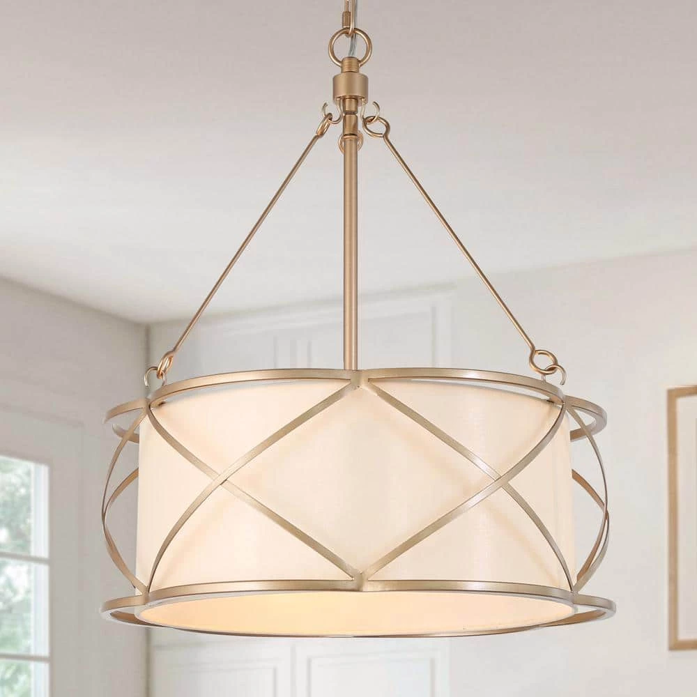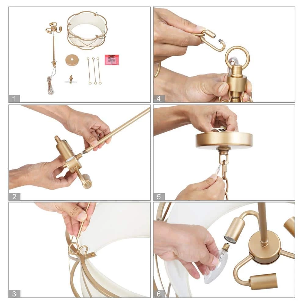 - Modern golden chandelier: the white drum-shaped lampshade with golden lines entwines the modern features. the simple combination of gold and white also matches the minimalist style