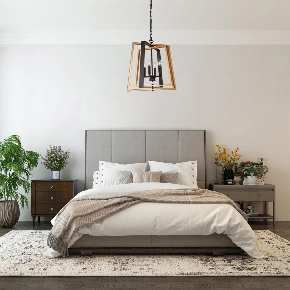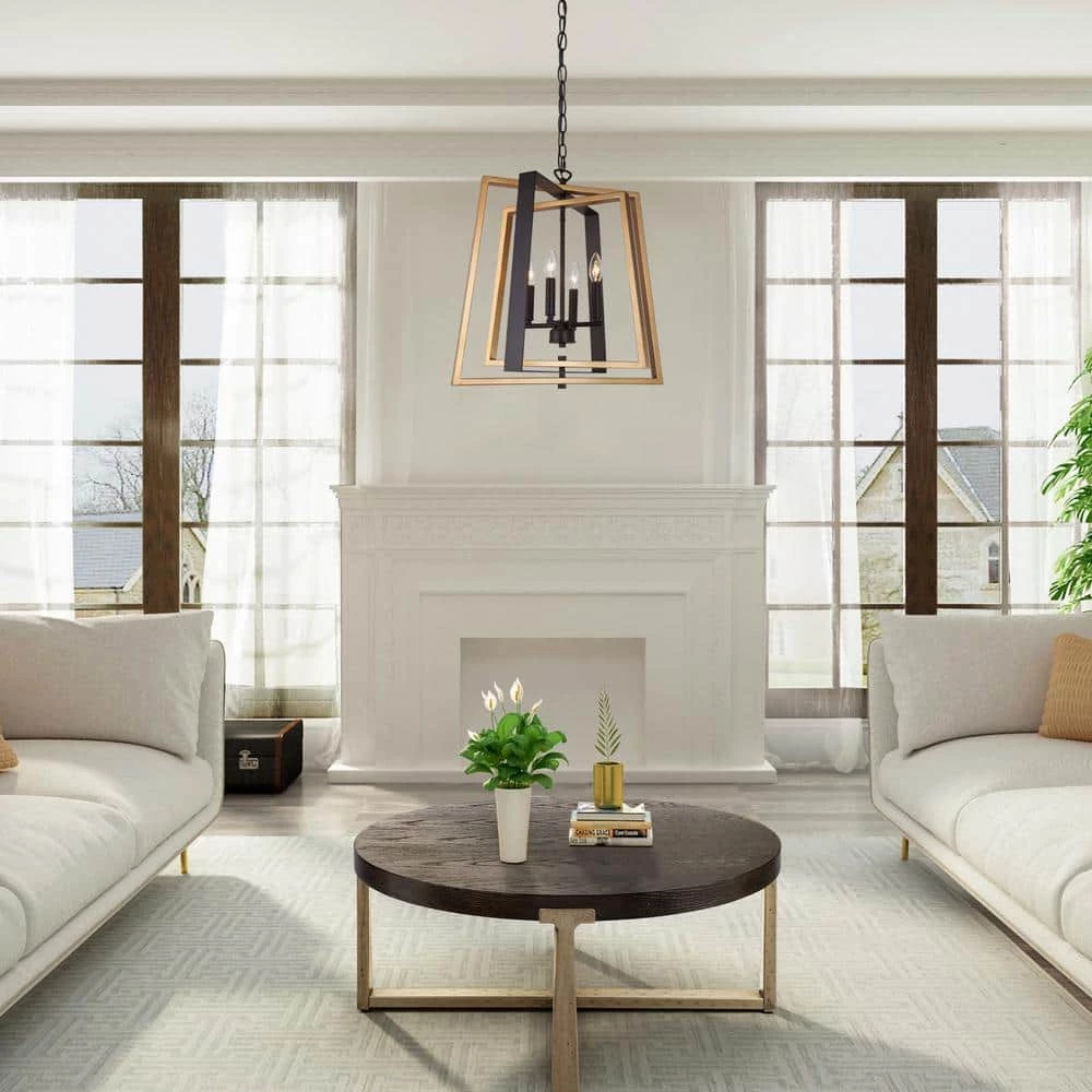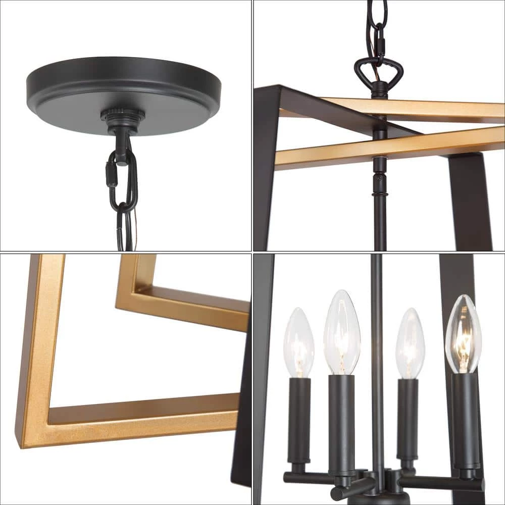 A perfect mix of contemporary design, this 4-light black and gold pendant light by Uolfin is ideal for adding a minimalist geometric flair to your lovely foyer/entryway, living room, dining room, kitchen island, bedroom, laundry, and more. Delicately crafted of sturdy metal, its popular brass gold and matte black finish brings a chic fashionable atmosphere to your space and is easily adaptable for a range of home decor. This 4-light gold pendant light comes with a 59 in. adjustable hanging chain that accommodates multiple ceiling heights. Whether in the countryside or a busy city, this on-trend industrial cage pendant lighting fixture will always add modern appeal to any interior by its seamless minimalist silhouette.
