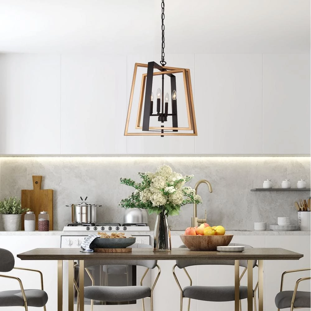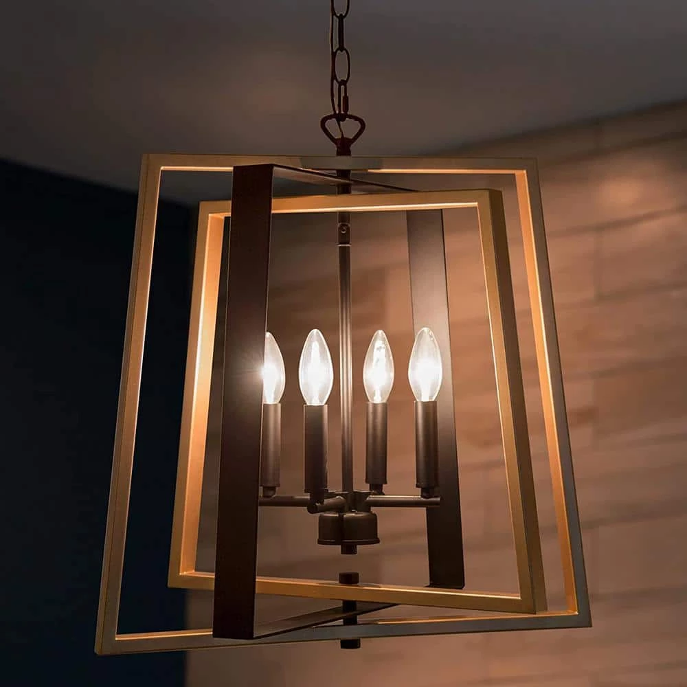 - MODERN CONTEMPORARY: Looking for a sassy modern indoor island lighting fixture to take the place of outdated ceiling light or other hanging fixtures? This gold pendant light by Uolfin offers a fashionable modern elegant geometric shape with classic candle style